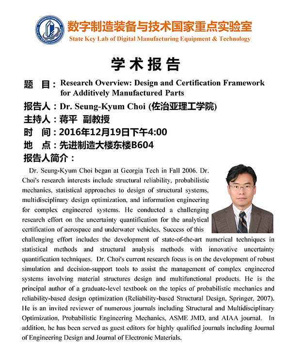 12.19 4:00PM 佐治亚理工学院Dr. Seung-Kyum Choi学术报告