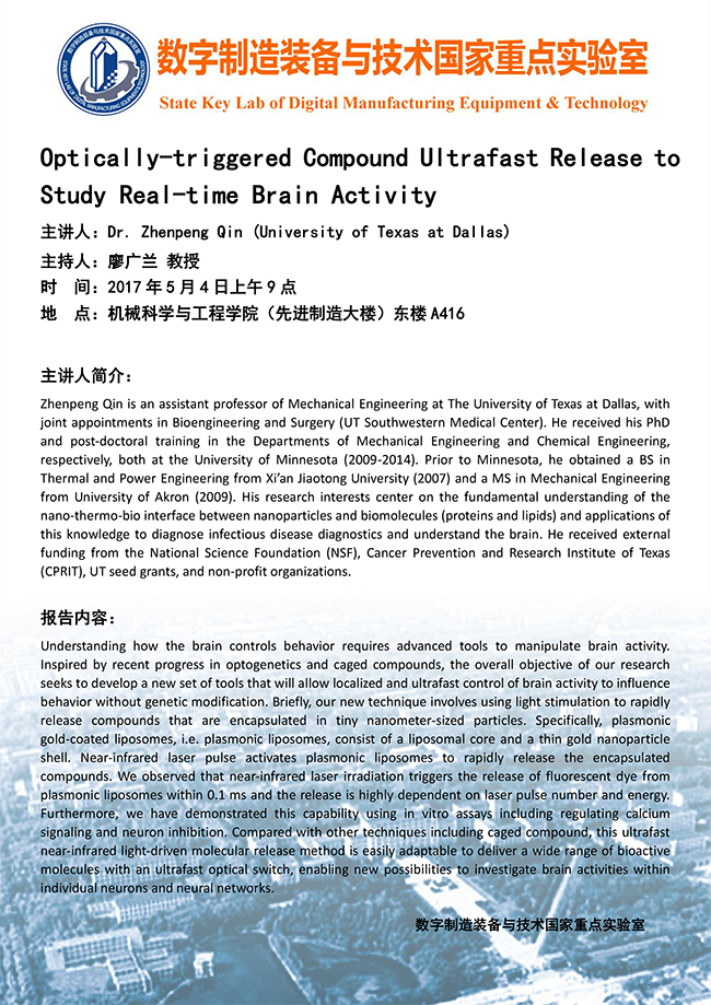 05.04 09:00AM 美国德克萨斯大学达拉斯分校Zhenpeng Qin博士学术报告