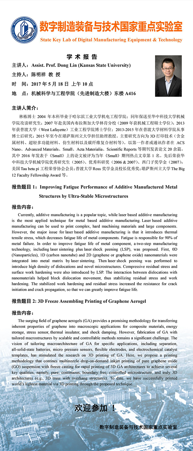 05.18 10:00AM 美国堪萨斯州立大学Dong Lin助理教授学术报告
