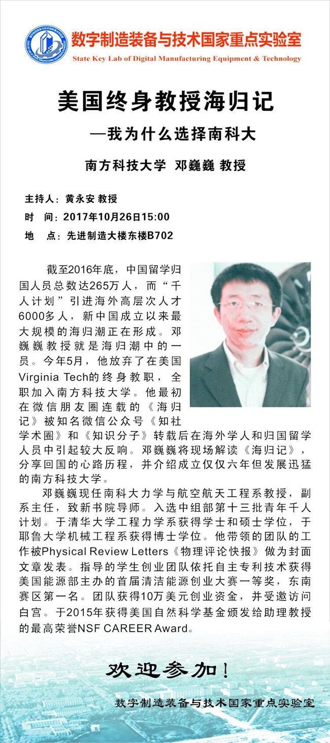 10.26 03:00PM 南方科技大学邓巍巍教授分享会