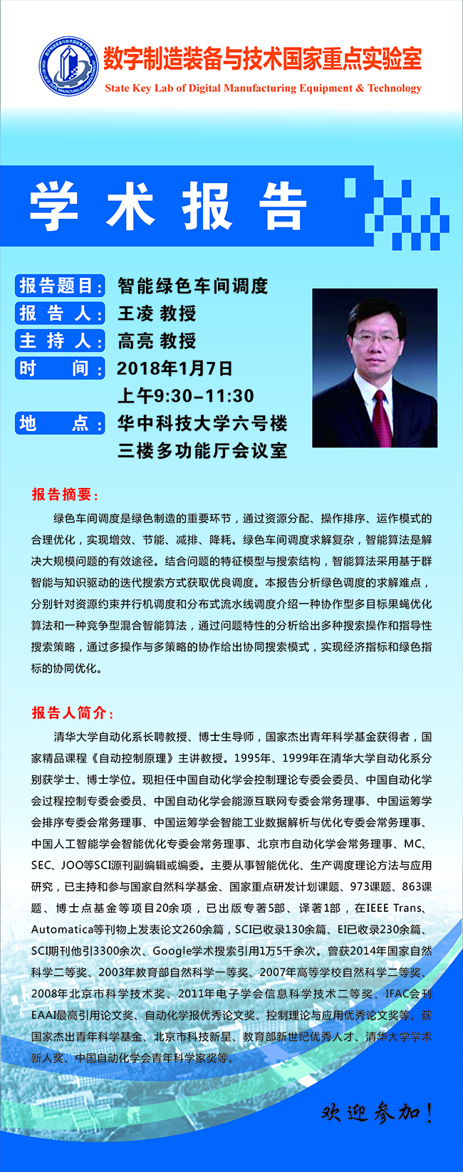 01.07 09:30AM 清华大学自动化系王凌教授学术报告
