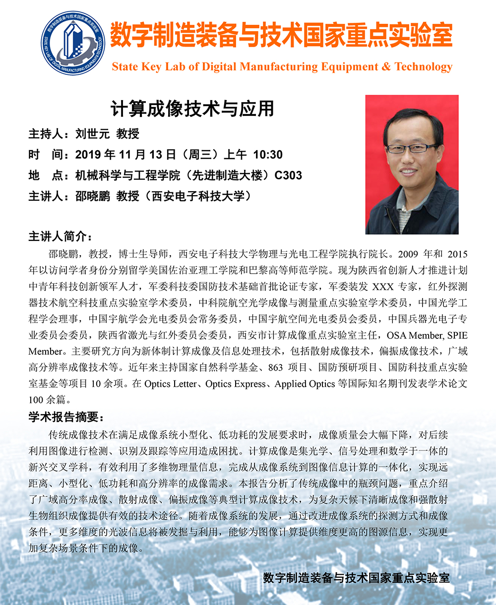 11.13 10:30AM 西安电子科技大学邵晓鹏教授学术报告